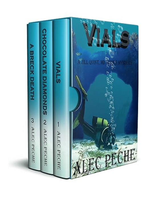 By: Alec Peche This is a boxset of the first 3 books in the Jill Quint series (15 books). VIALS is the story of a young attorney who dies after a scuba diving infection. CHOCOLATE DIAMONDS is the story of a jewel thief murdered by her nut allergy in Belgium. A BRECK DEATH is a Biotech CEO who is paralyzed and dies by a poison dart on the ski slopes. |