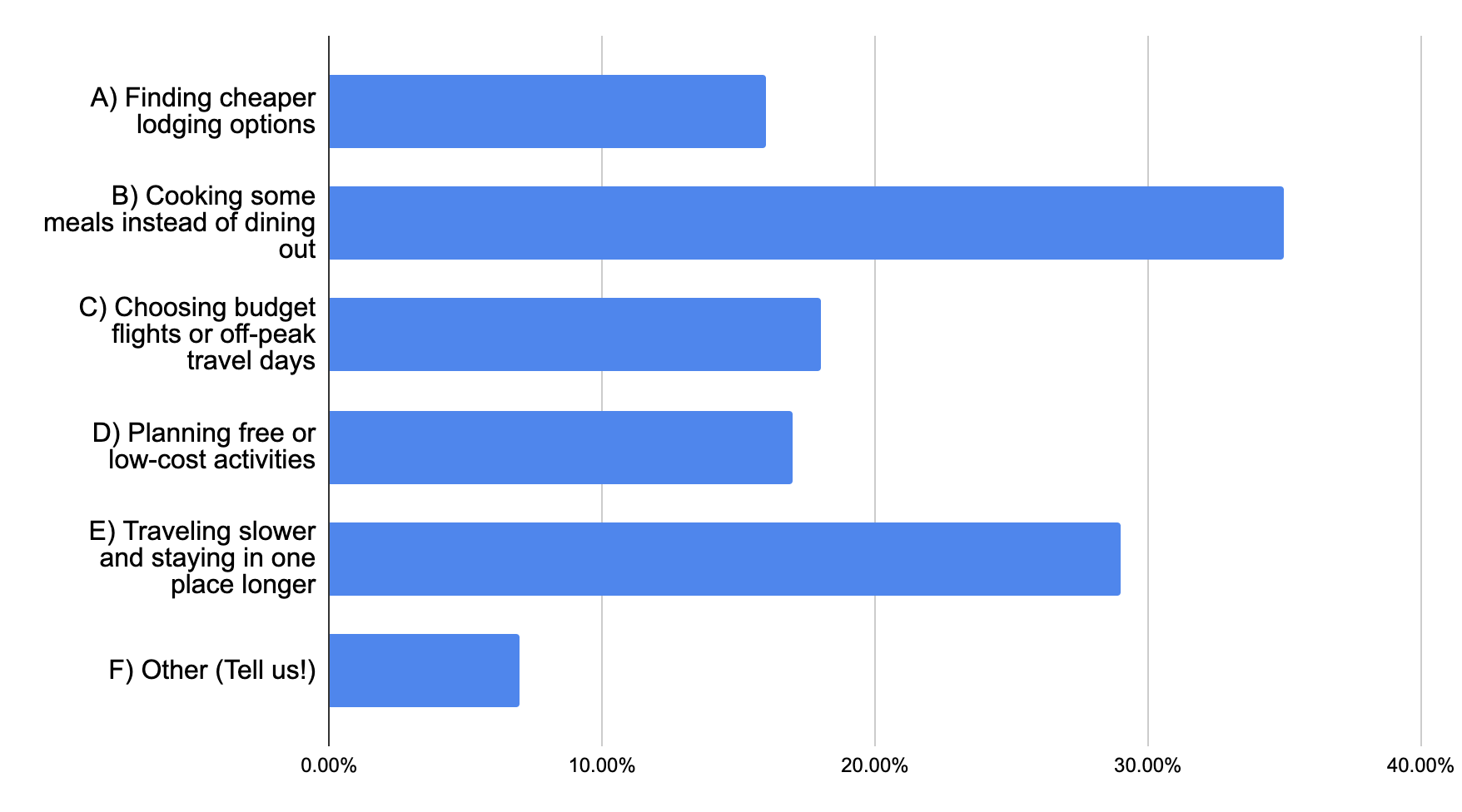 The poll results are in, and the clear winner for saving money on an extended trip is cooking some of your own meals, earning 35% of the vote. Traveling slower and staying in one place longer followed with 29%, showing that a relaxed pace can be both budget-friendly and enriching. Budget flights or off-peak travel days (18%) and planning free or low-cost activities (17%) were close behind, proving that timing and experiences make a big impact. Meanwhile, 16% of voters prefer finding cheaper lodging, and 7% shared creative “other” strategies. Altogether, the results highlight a savvy, resourceful community that knows how to stretch a travel budget without sacrificing the joy of the journey.