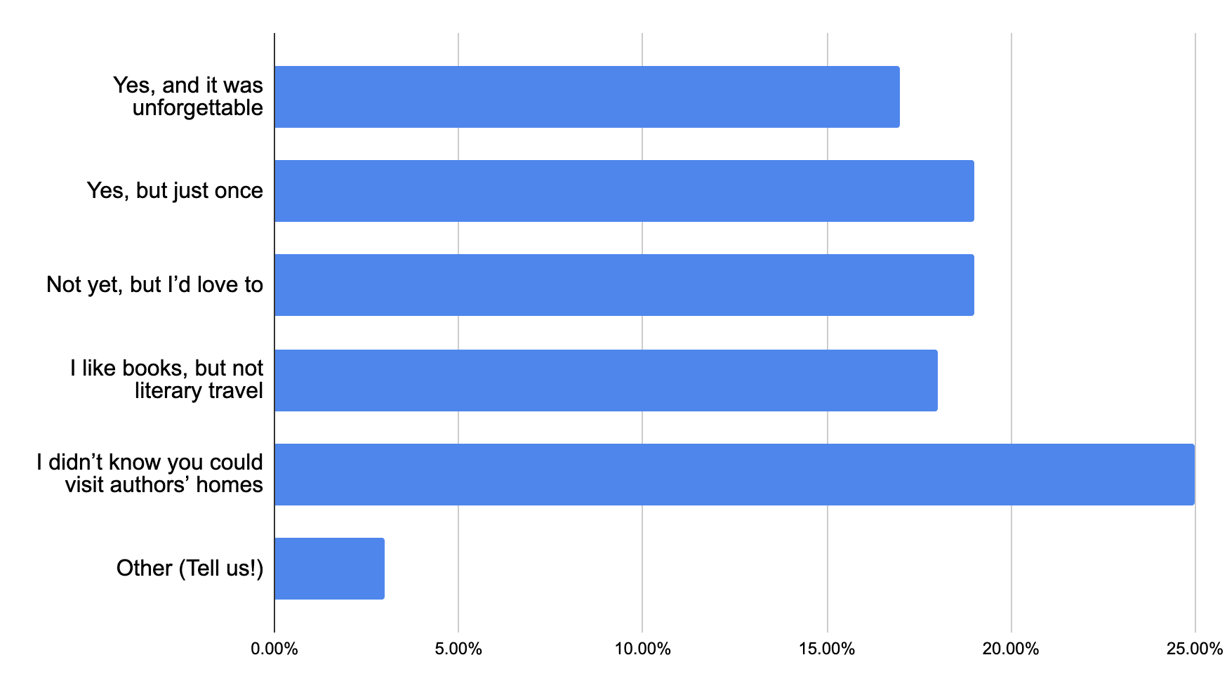 The results show plenty of curiosity around literary travel, with nearly half of respondents either having visited an author’s home or hoping to someday. The biggest surprise is that a full quarter of readers didn’t even realize these homes are open to visitors, suggesting there’s lots of room to spark new interest and discovery. Overall, the poll reveals a mix of seasoned book lovers, first-time explorers, and curious readers just beginning to imagine books coming to life beyond the page.